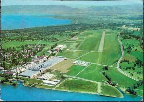 Altenhein, Switzerland - Vehicle Works & Airport, Lake - postcard, stamp, 1968