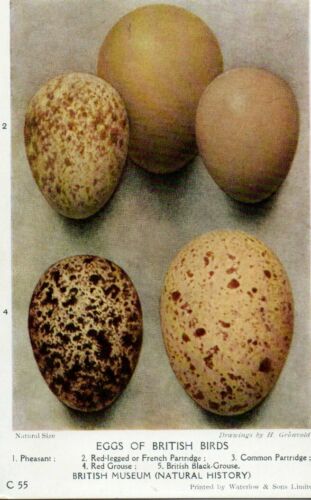 VINTAGE BRITISH MUSEUM ART postcard: EGGS OF BRITISH BIRDS Pheasant Grouse C55