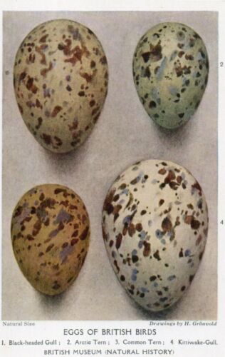 Title (ebay affiliate link): VINTAGE BRITISH MUSEUM ART postcard: EGGS OF BRITISH BIRDS Gulls Terns C62