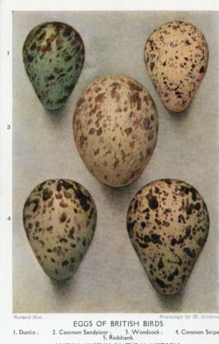 VINTAGE BRITISH MUSEUM ART postcard: EGGS OF BRITISH BIRDS Dunlin Snipe C58
