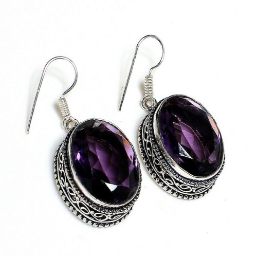 Great Purple Amethyst Gemstone 925 Silver Jewelry Vintage Earring Size 1.50''''