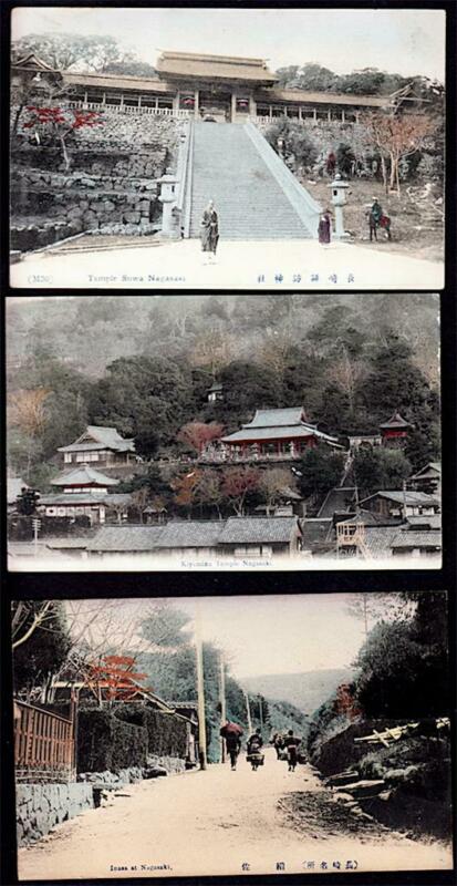 Lot of 3 - Nagasaki, Japan c.1907-1910''s - Suwa, Kiyomizu Shrines, Inasa Road