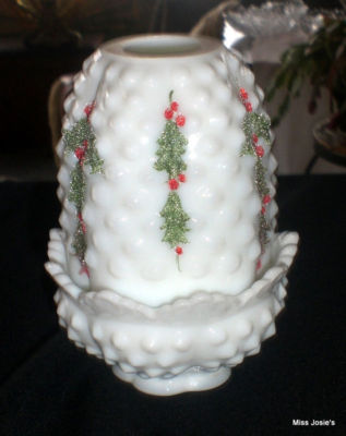 Vtg Fenton Handpainted White Milk Glass Fairy Lamp