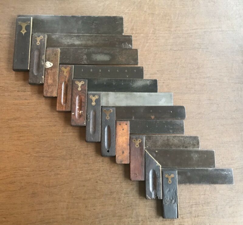 Title (ebay affiliate link): Lot Of 11 Antique Vintage Carpenters Try Squares Stanley Brass Wood Handles