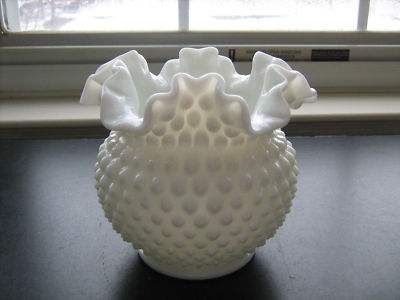 VINTAGE Fenton White Milk Glass HOBNAIL 5 3/4" Vase EXC