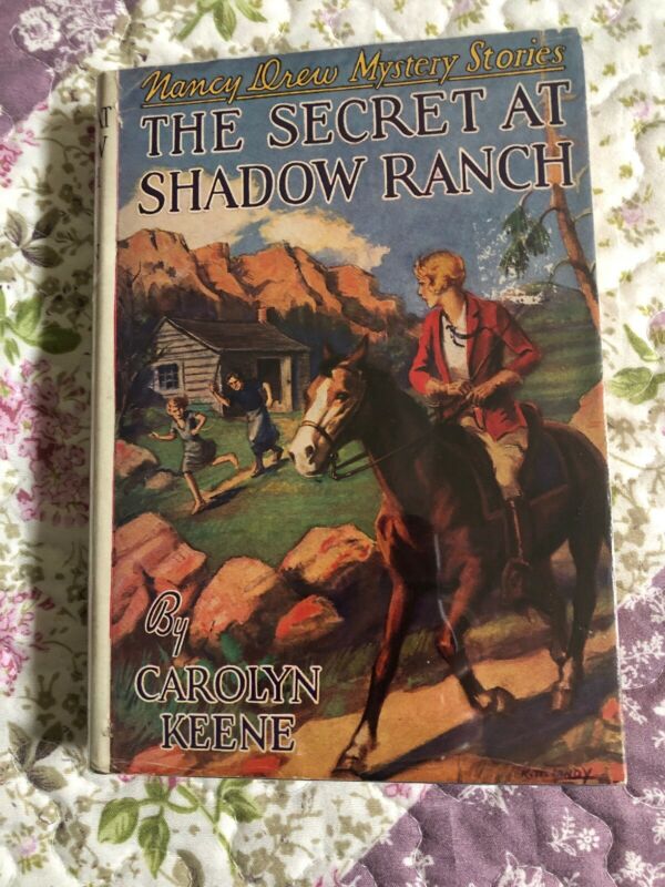 Title (ebay affiliate link): The Secret at Shadow Ranch 1931 Nancy Drew Book by Carolyn Keene HC DJ