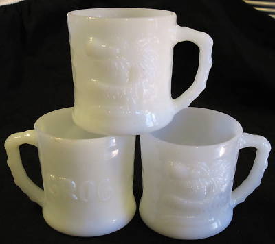 VINTAGE~ 3~*GROG* HART~MILK GLASS~COFFEE CUP MUG