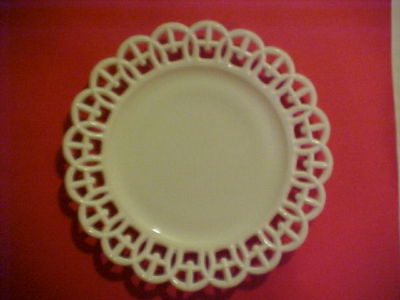 White Milk Glass 7 Inch Plate with Open Lace Edge