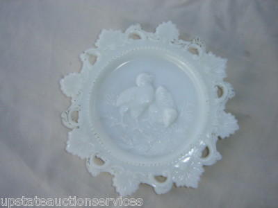 NICE LATE 1800'S MILK GLASS PLATE WITH EASTER CHICKS