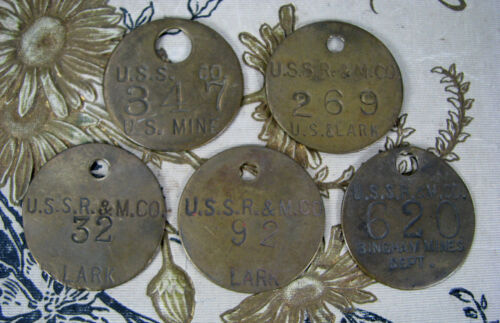 5 old Ghost Town LARK, UTAH / BINGHAM UT tool tags UNITED STATES SMELTING etc