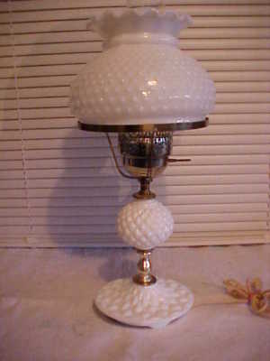 VINTAGE MILK GLASS HOBNAIL LAMP