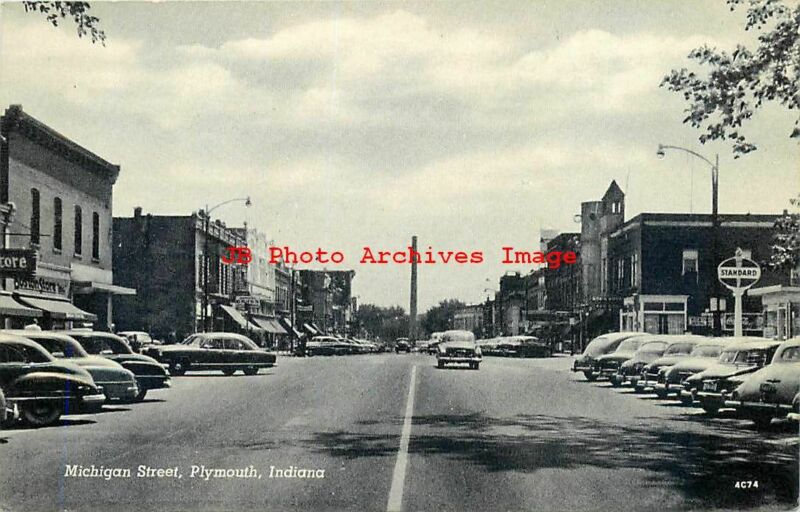 IN, Plymouth, Indiana, Michigan Street, Business Section, Curteich No 4C74