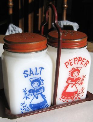 Vintage Milk Glass Salt and Pepper plus tray