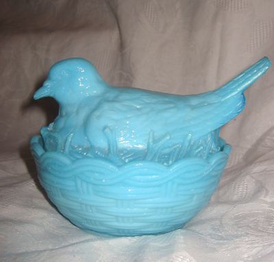 Estate Chicken Or Dove on A Nest Blue Milk Glass Mint