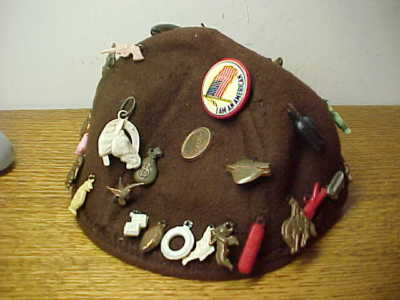 COOL 1950S BEANIE WITH GUM MACHINE CHARMS POLITICAL ETC