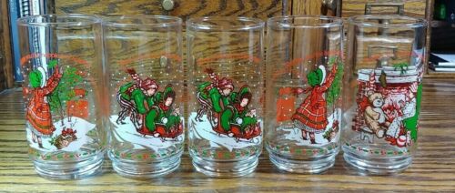 Title (ebay affiliate link): Coca Cola Drinking Glasses Set of 5 Holly Hobbie Christmas