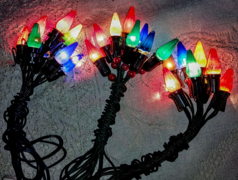 Title (ebay affiliate link): Vtg Christmas Tree C6 light cords 8 sockets ea. 3 sets Working Red beads & clips