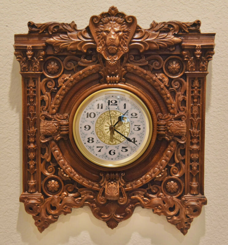 Title (ebay affiliate link): Decorative carved solid mahogany hanging Wall Clock 17"h x 15"w