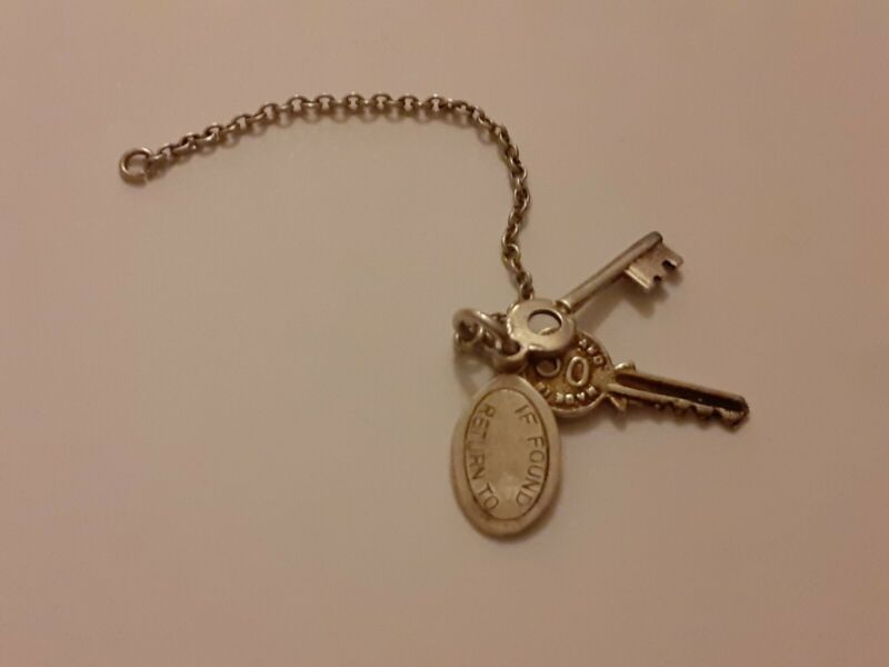 Title (ebay affiliate link): VINTAGE STERLING SILVER SET OF KEYS SAFETY CHAIN '' if found return to '' CHARM