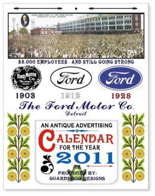 Antique Calendar Advertising Ford Logo Engines Sign Gas