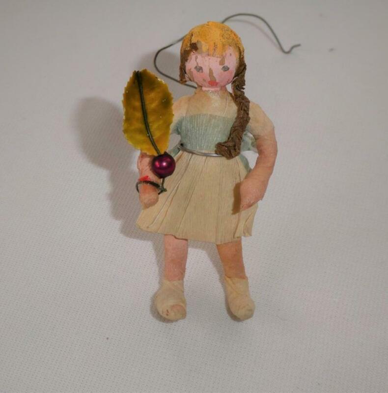 Title (ebay affiliate link): ANTIQUE CREPE PAPER YOUNG GIRL DOLL CHRISTMAS TREE ORNAMENT