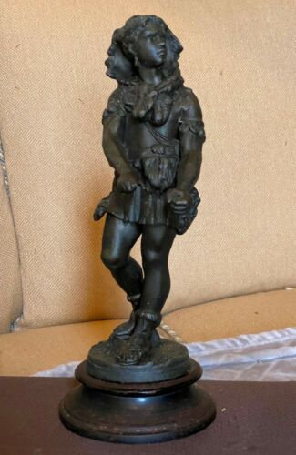 1880s Antique African Black man White Metal Spelter 15" statue Ansonia clock top
