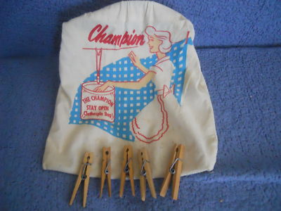 Vintage Champion Clothespins Bag with Wood Pins
