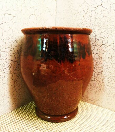 Title (ebay affiliate link): Antique Primitive 6" REDWARE Pottery Storage Jar MANGANESE Decoration w Flaws