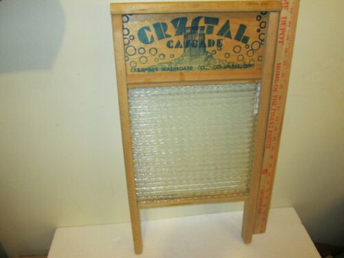 Title (ebay affiliate link): ANTIQUE WASHBOARD COLUMBUS CRYSTAL CASCADE 2080 RIBBED GLASS BIG 23in Vtg Wood
