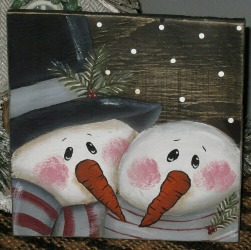 Title (ebay affiliate link): *~*PRIMITIVE*~* HP FOLK ART PRIM SNOWMAN COUPLE *~* WINTER *~* BOARD