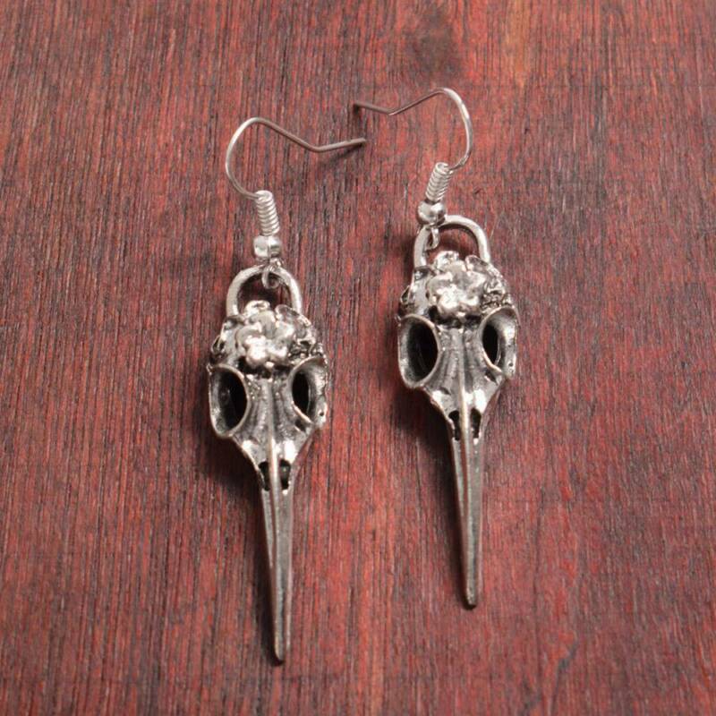 Title (ebay affiliate link): Antique Crow Viking Raven Skull Gothic Punk Steampunk Dangle Earrings, Silver