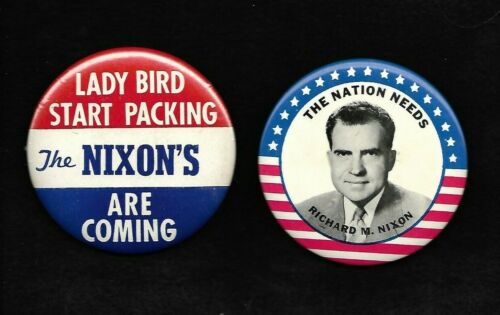 Title (ebay affiliate link): 2 early, large RICHARD NIXON for President in 1960 photo button + 1968 Lady Bird
