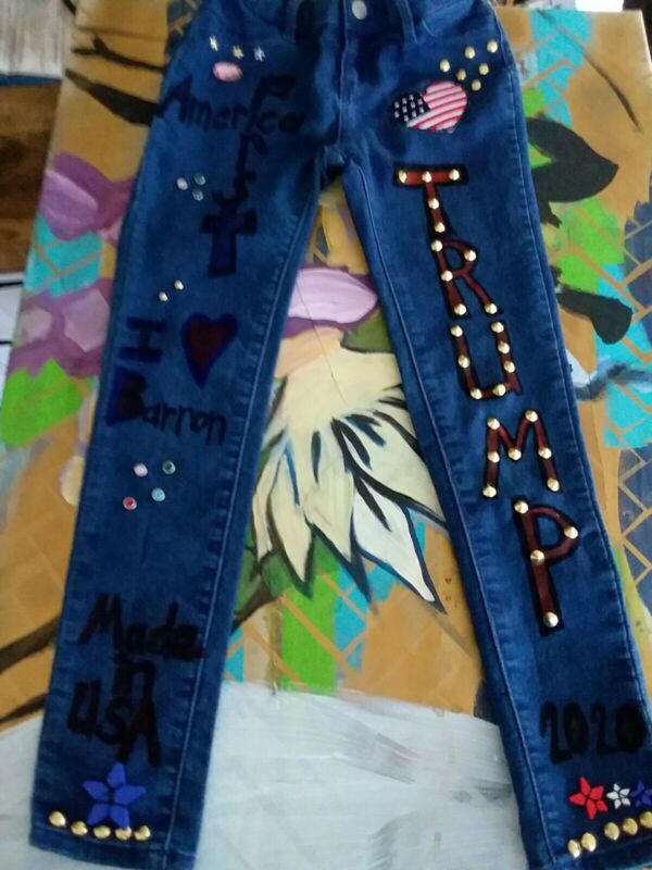 Title (ebay affiliate link): TRUMP 2020 embellish BLING girl jeans size 6 SEQUIN bedazzle USA FLAG pants stud