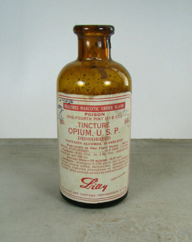 Title (ebay affiliate link): AUTHENTIC! TINCTURE OPIUM Labeled EMPTY old POISON pharmaceutical bottle LILLY