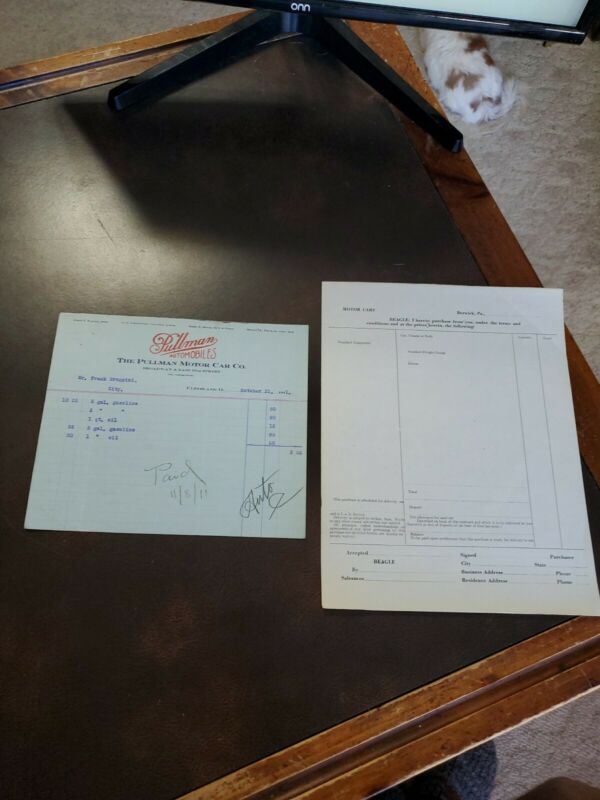 Title (ebay affiliate link): Vintage 1911 Pullman Automobiles (York, Pa) billing / receipt & unused Sale Slip