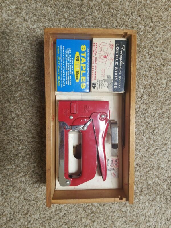 Title (ebay affiliate link): Vintage Swingline 800 Heavy Duty Staple Gun Kit wood box finger joint