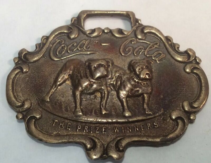Vintage Coca Cola Brass Watch Fob Two Bulldogs Prize Winners Antique Vtg Rare