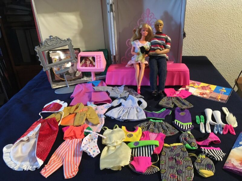 BARBIE & Jointed Waist KEN 1968 Case Clothes Accessories Furniture