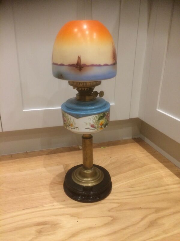 Title (ebay affiliate link): Antique Ornate Painted Veritas Duplex Oil Lamp. Rare.