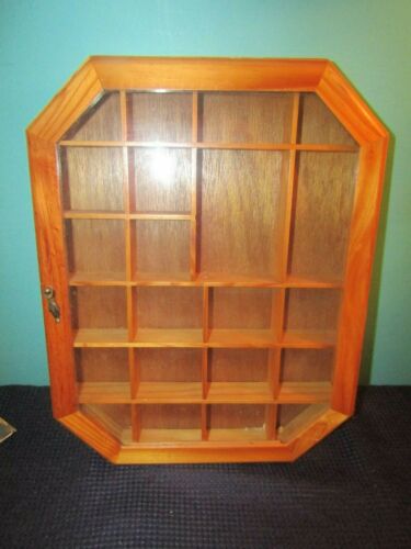 Wood Wall Miniature Display Shelf Curio Shadow Box Glass Door 15" hi Vintage
