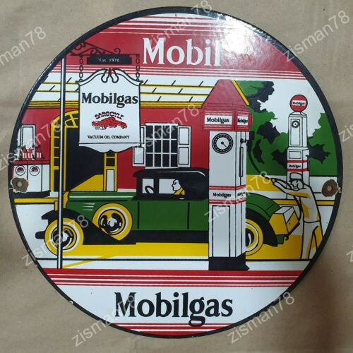 MOBIL GAS PUMP VINTAGE PORCELAIN SIGN 12 INCHES ROUND