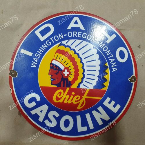 Title (ebay affiliate link): IDAHO CHIEF GASOLINE VINTAGE PORCELAIN SIGN 12 INCHES ROUND