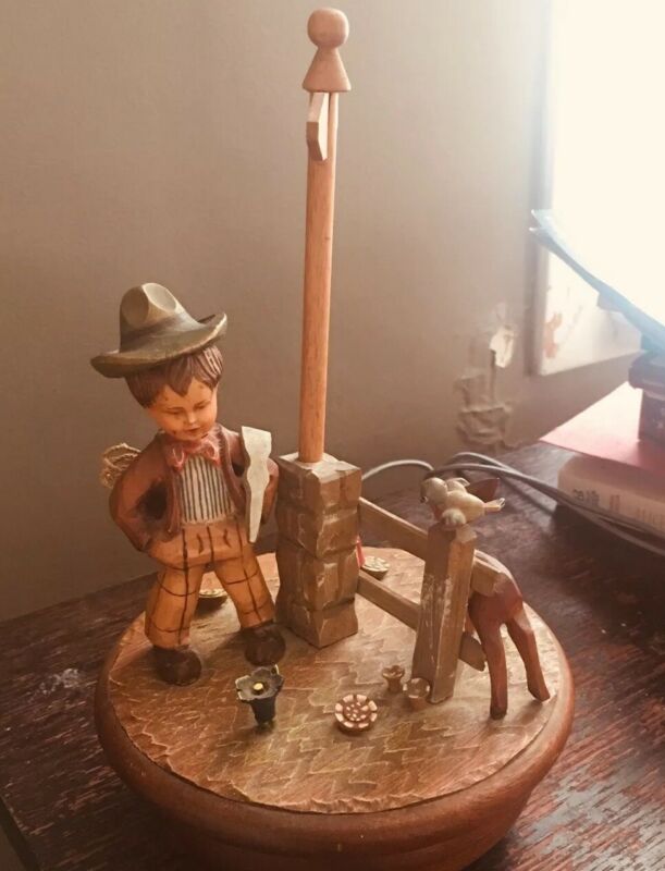 Title (ebay affiliate link): Vintage Anri Thorens Revolving Music Box Musical Wood Swiss Happy Wanderer 9.5"