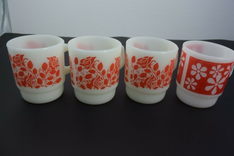 Vtg anchor hocking fire king milk glass stackable mugs, lot of 4, great cond!