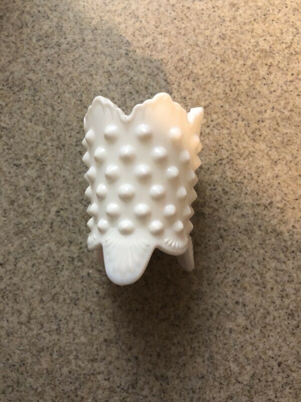 Fenton Toothpick Holder Hobnail White Milk Glass milkglass Three Toed scalloped