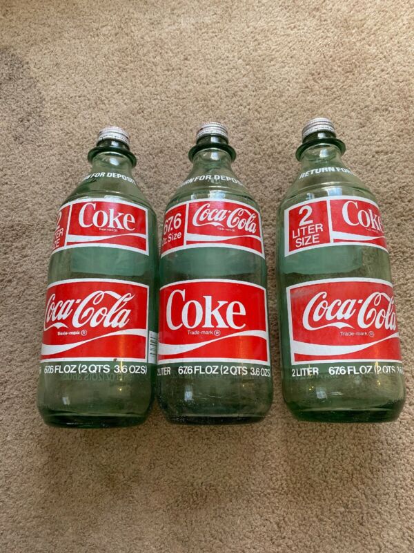 Title (ebay affiliate link): 70s Coca-Cola 2 Liter Glass Bottle 67.6 fl oz 2qt. 3.6oz Your Getting 3 Of Them