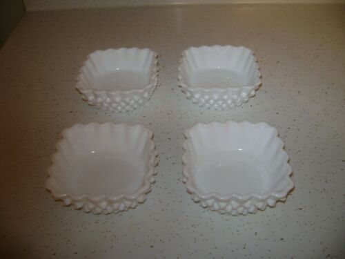Set Of 4 Vintage Fenton Milk Glass Hobnail 4" Bowls