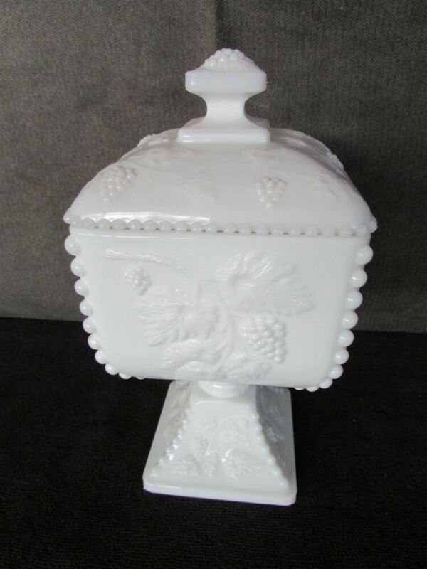 Title (ebay affiliate link): Westmorland White Milk Glass Pedestal Covered Candy Dish D-21