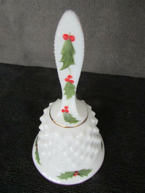White Milk Glass Bell with Hand Painted Holly D-50