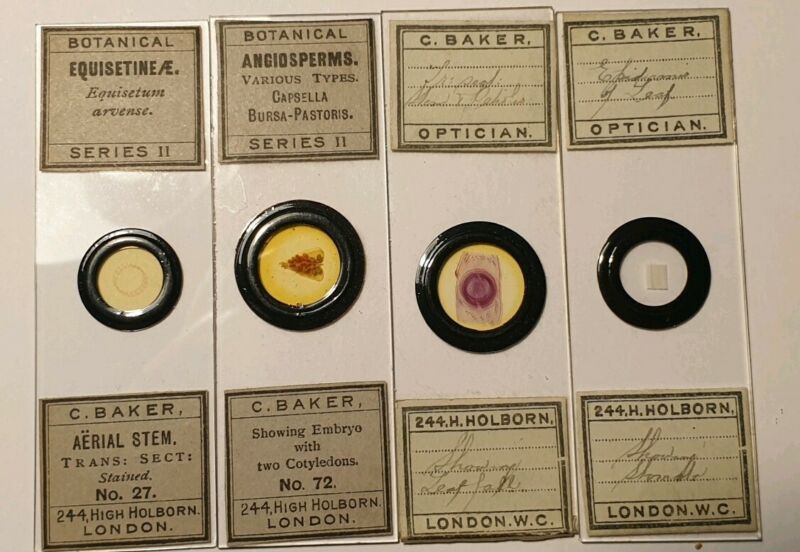 Title (ebay affiliate link): FINE GROUP OF 4 ANTIQUE BOTANICAL MICROSCOPE SLIDES BY C.BAKER